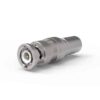 There are many different types of RG and industry-standard coaxial cables, and BNC connectors can accommodate them all. Quickly connect and disconnect with secure locking is possible with its bayonet-style coupling mechanism. Just a quarter turn of the coupling nut is all it takes to get them to mate. For cables of size 400, this is a male (plug) right-angle connector.